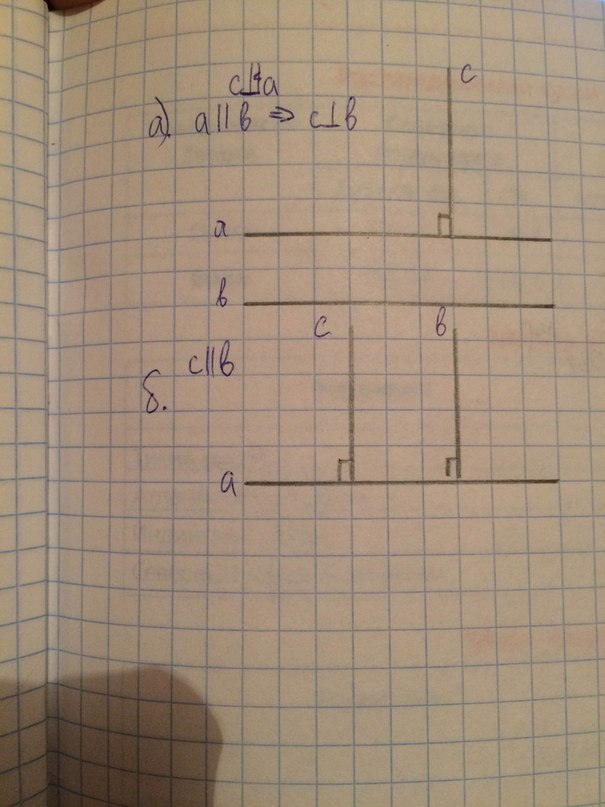 а)Две пареллельные прямые a и B и прямую с,перпендикулярную прямой а