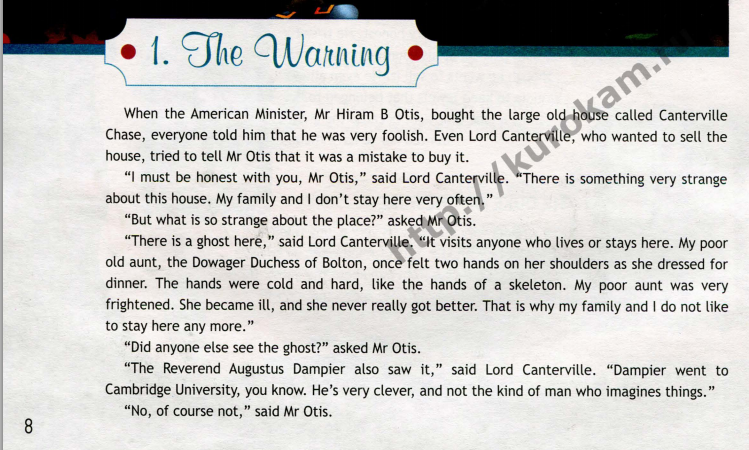 Я буду честен с вами мистер отис сказал лорд кантарвейл .В этом доме что то странное .моя семья и я не часто здесь останавливаемся.
