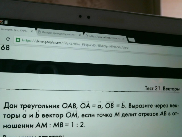 Дано:ΔOAB ; AM/MB =1:2 ; M∈AB ; OA = a ;OB =b.