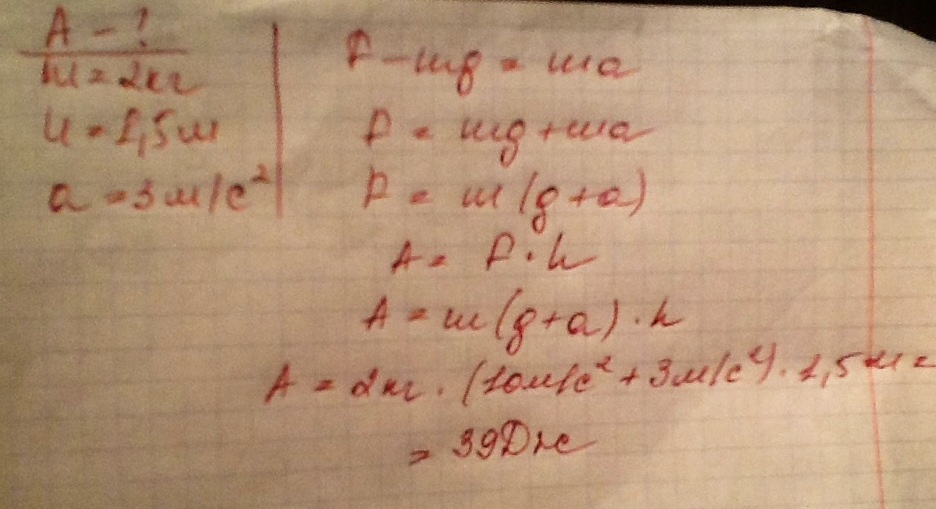 a = (ma+mg)s = (2*3+2*10)*1.5= 26*1.5=39джоулей