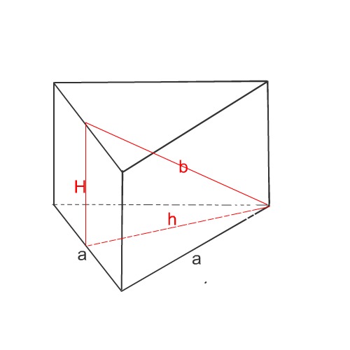 Чему равен объем правильной треугольной призмы со стороной основания a и расстоянием от вершины одного основания до противолежащей стороны другого основания равным b. ( желательно картинкой)