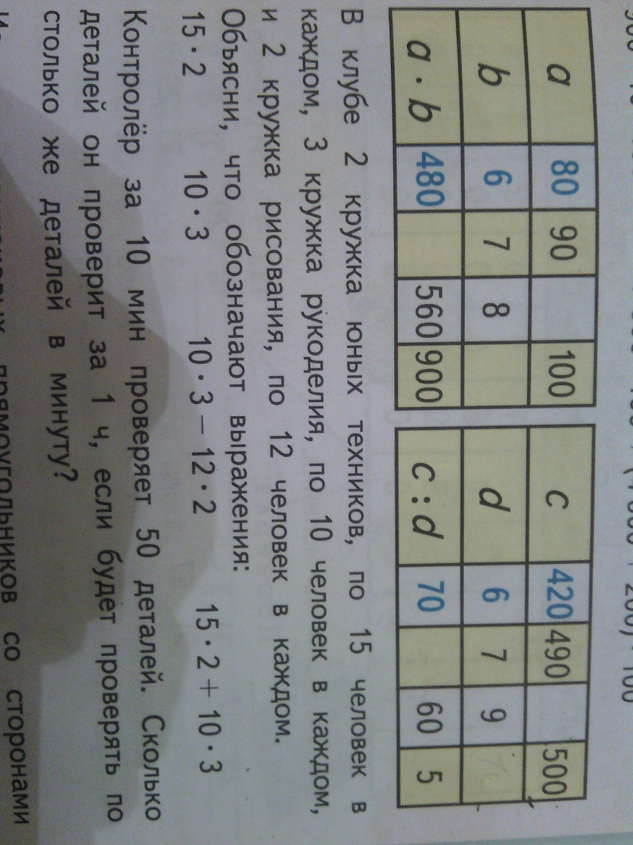 15*2 мы узнаём здесь сколько чел. посещает кружок юных техников 10*3 сдесь мы узнаём сколько чел.посещает кружок рукоделия в 3 мы узнаём на сколько чел. больше ходит в кружок рукоделия чем рисование а в последним узнаём сколько вместе чел. посещают кружки юных техников и рукоделия