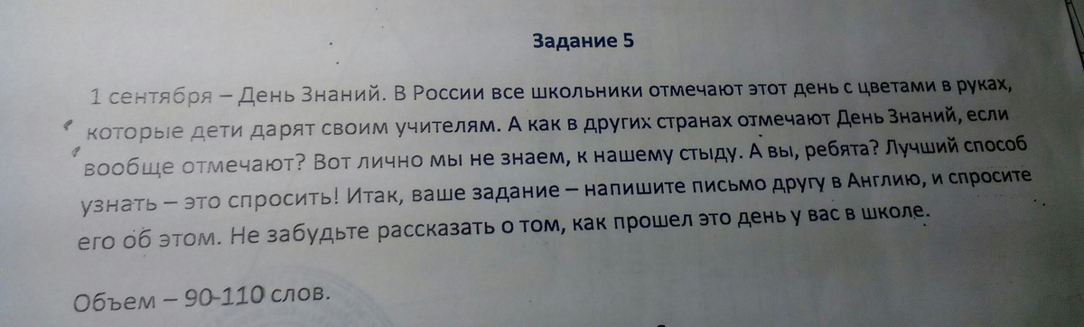 Hello my best friend ! we had a day of knowledge and brought a lot of different flowers and gifts to the teachers were . and how did you celebrate the day of knowledge , probably as well as I and my favorite school. please tell me what you gave to the teachers how was your first day at school and how you learn is it easy for you? at us in Russia to learn very easily and especially when the weather is nice. I still get good grades in all subjects . what do you study? on the first of September weather in Moscow managed was warm and Sunny as you got in England was the weather . on the first of September we only had three lessons and then we went to get textbooks. after that all students went home to prepare for lessons. а вот так подойдёт?