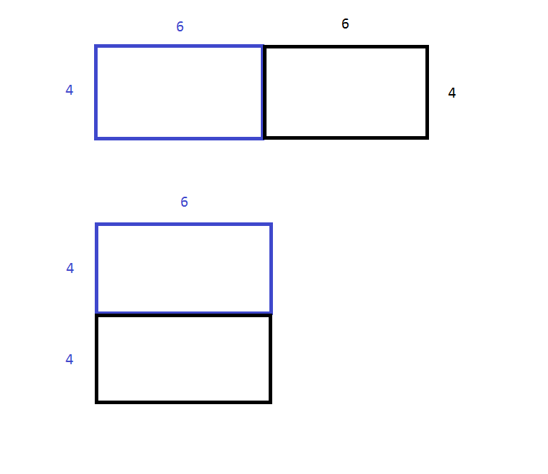 сперва сложим два прямоугольника большими сторонами. тогда у нас получиться прямоугольник у которого одна сторона будет 6см, а вторая : 4+4=8см.