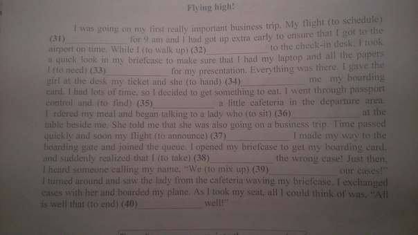 there. I gave the girl at the Desk my ticket and she (4)to hand me my boarding