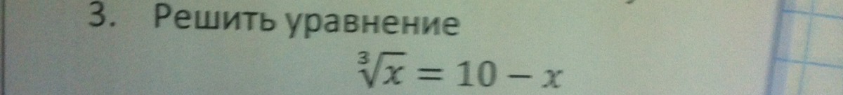 Я бы решал это уравнение графически. На одной координатной плоскости построить график у = ∛х и у = 10 - х