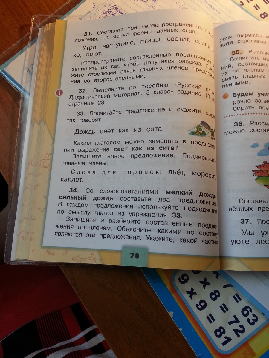 нужно еще в каждом предложении расписать какой частью речи выражен каждый член предложения