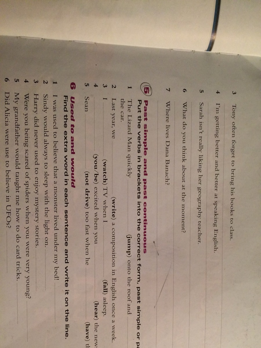 Present simple and present continuous :1)my sister is wanting me to help her with her homework 2)they're taking a test at the moment