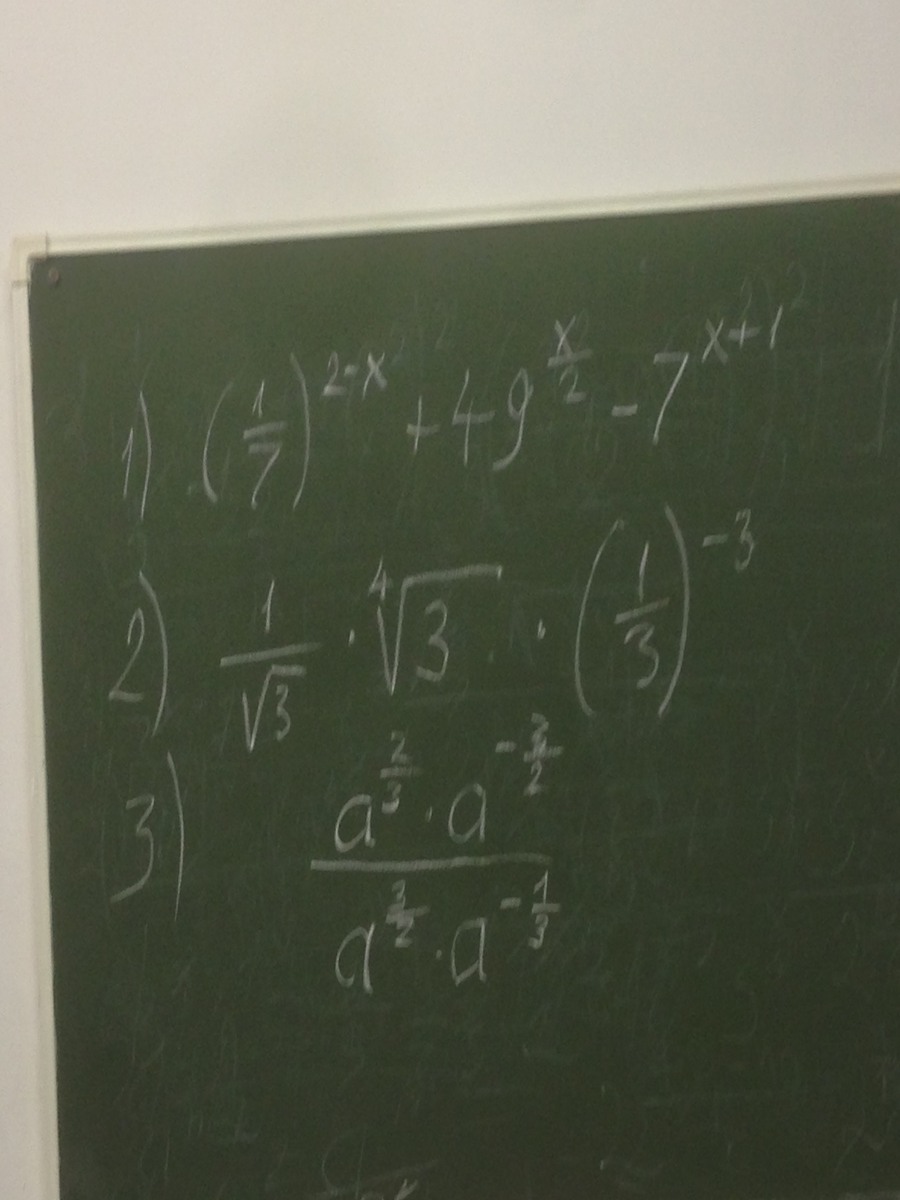 frac{1}{ sqrt{3} }* sqrt[4]{3}*( frac{1}{3})^{-3}=3^{- frac{1}{2} }*3^{ frac{1}{4} }*3^{3}=3^{-0,5+0,25+3}=3^{2,75}