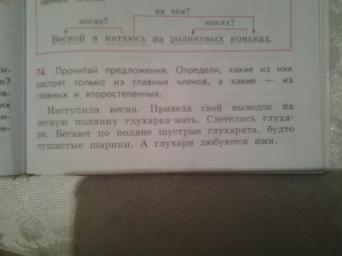 Прочитай предложения. Определи, какие из них состоят только из главных членов, а какие из главных и второстепенных.