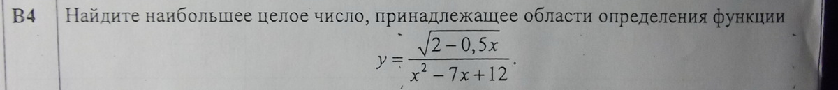 тогда итоговая область определения будет таковой: (минус бесконечность; 3) U (3; 4), а самым большим целым чилом, входящим в нее, будет 2.