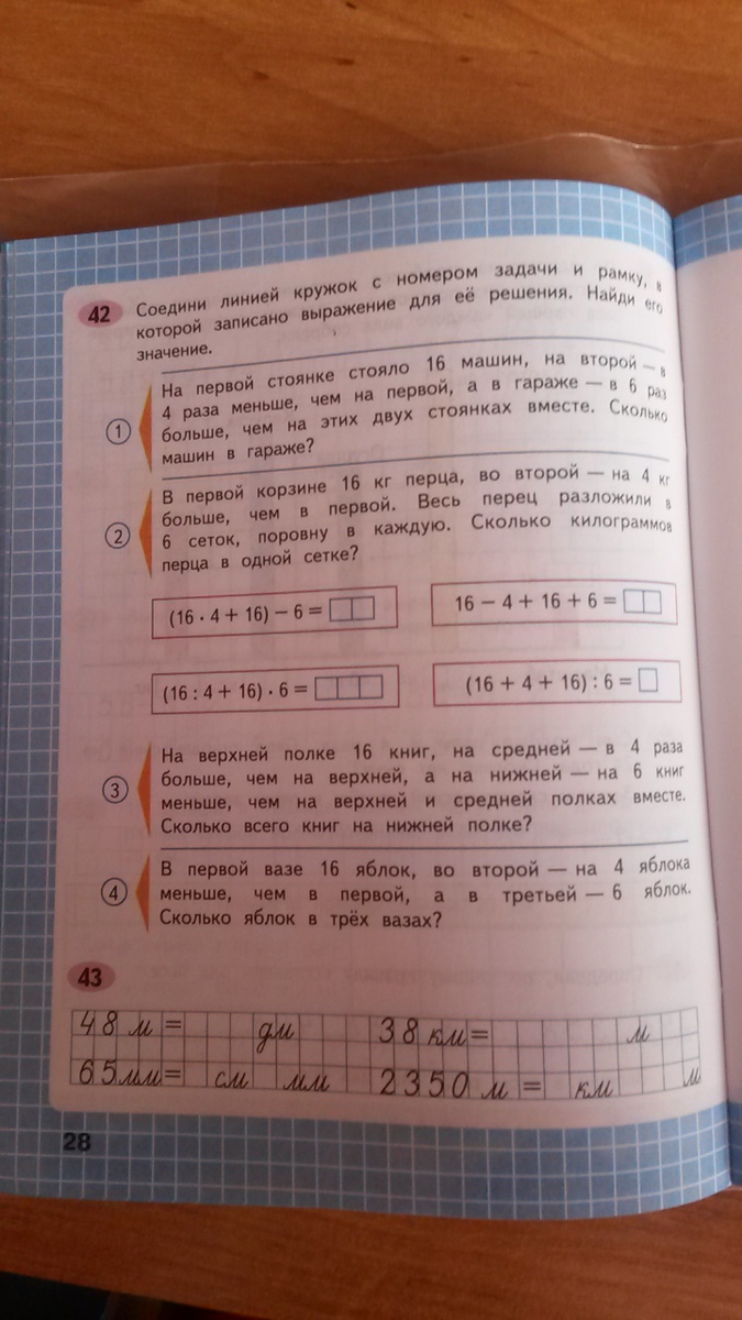 соедени линеей кружок с номером задачи и рамку в которой записано выражение для ее решения. найди его значение