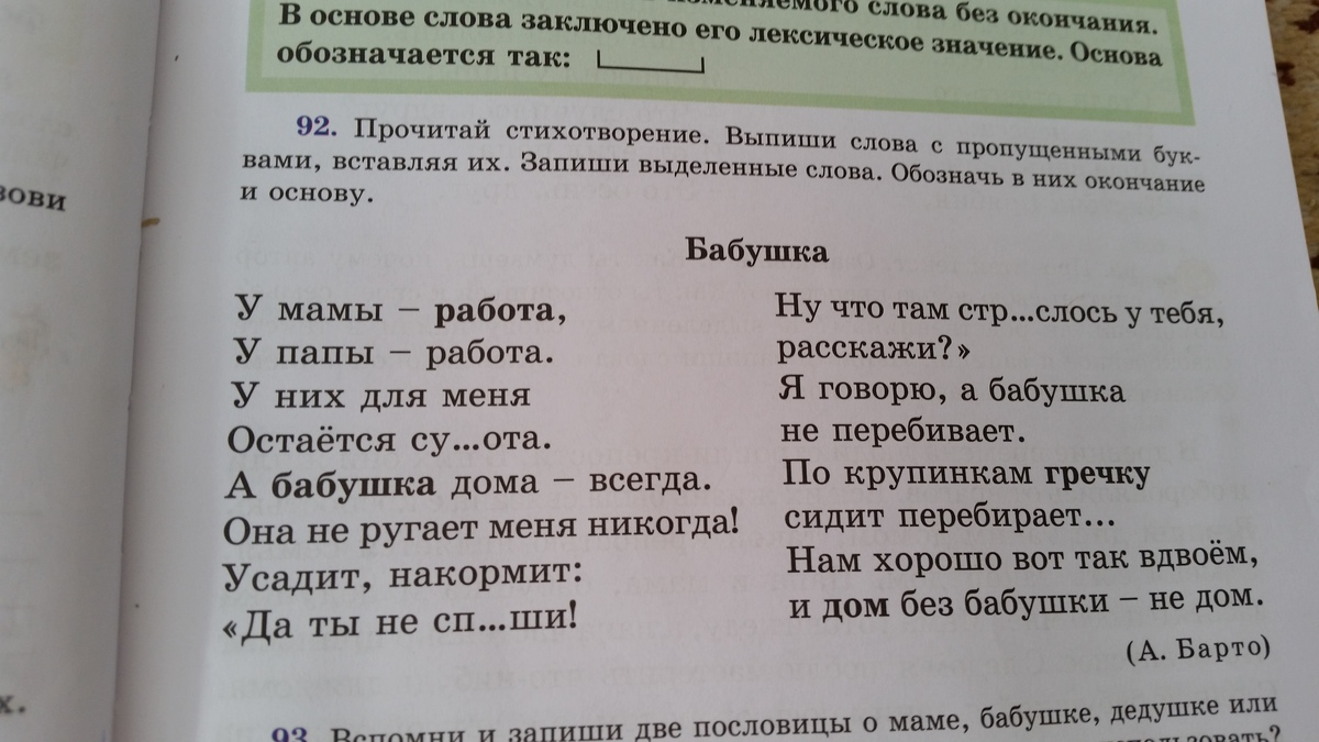 прочитай стихотворение. Выпиши слова с пропущенными буквами, вставляя их. запиши выделенные слова. Обозначь в них окончание и основу