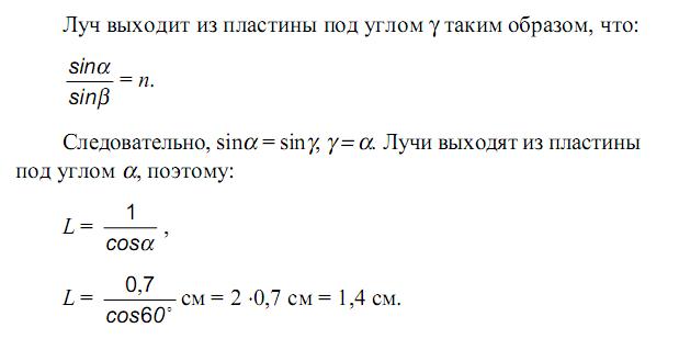 Может ли луч,пройдя сквозь плоскопараллельную пластину,переместиться так, чтобы расстояние между ним и его первоначальным направлением было больше толщины пластины? Объяснить.