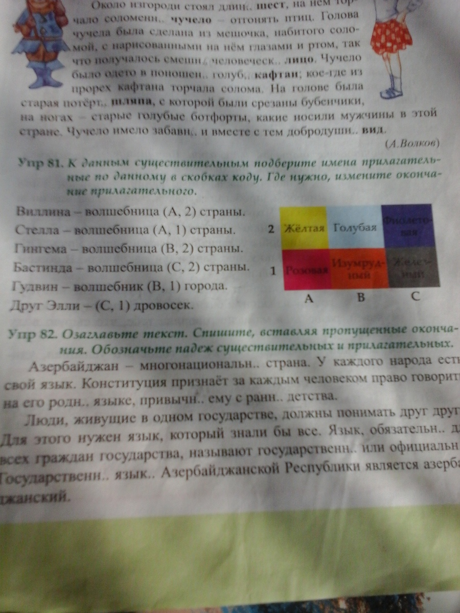 Виллина волшебница желтой страны;Стелла волшебница розовой страны;Гингема волшебница голубой страны;Бастинда волшебница фиолетовой страны;Гудвин волшебник изумрудного города;Друг Элли железный дровосек.