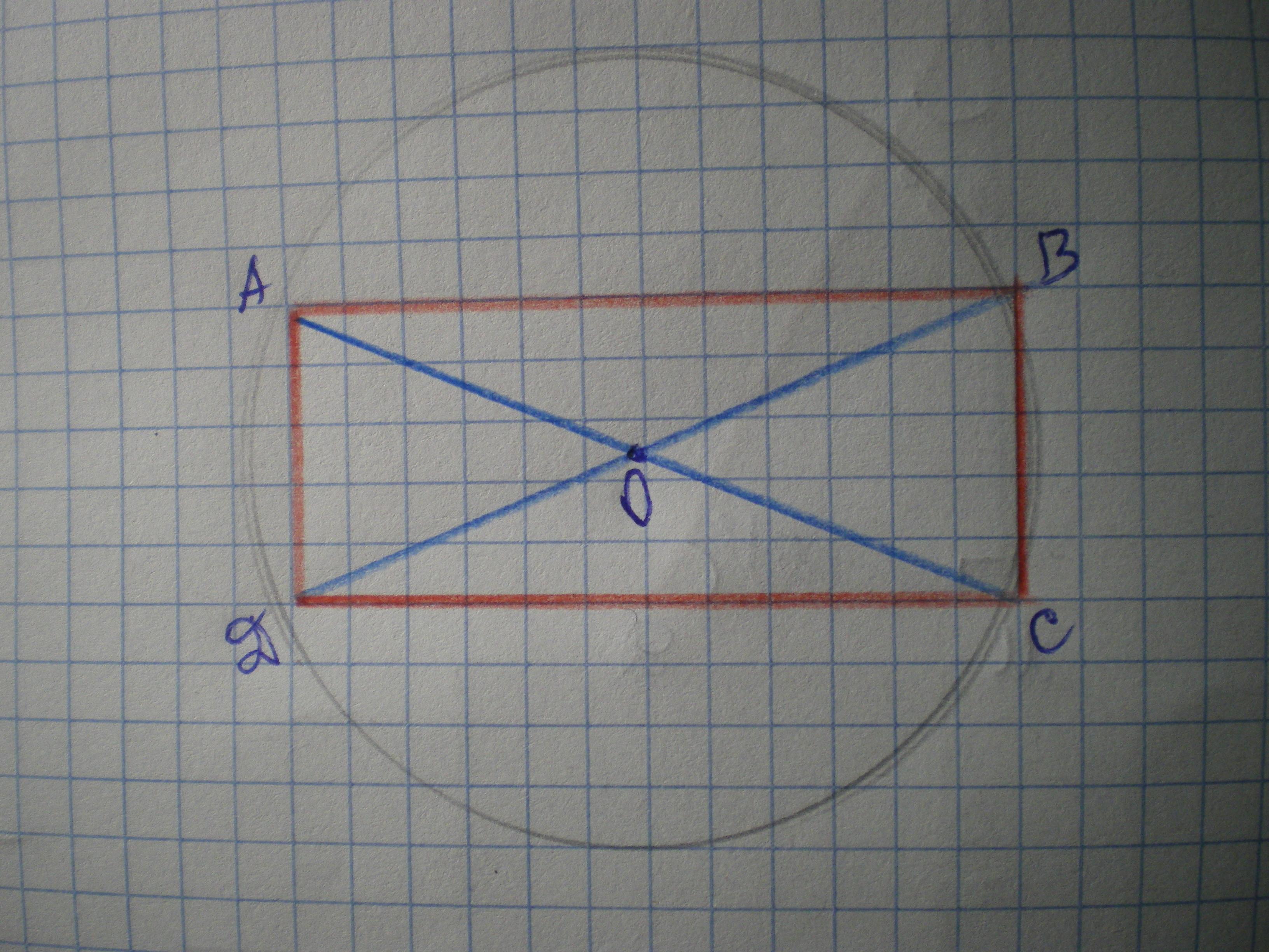 Чтобы описать вокруг него окружность, надо провести диагонали АС и ВD, тогда точка О (пересечение диагоналей) будет центром окружности, а длина АО=ОВ=ОС=ОD это радиус окружности.