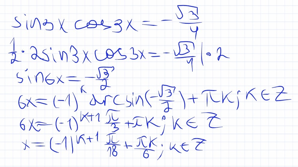 sin3x * cos3x= минус корень из 3 делённое на 4