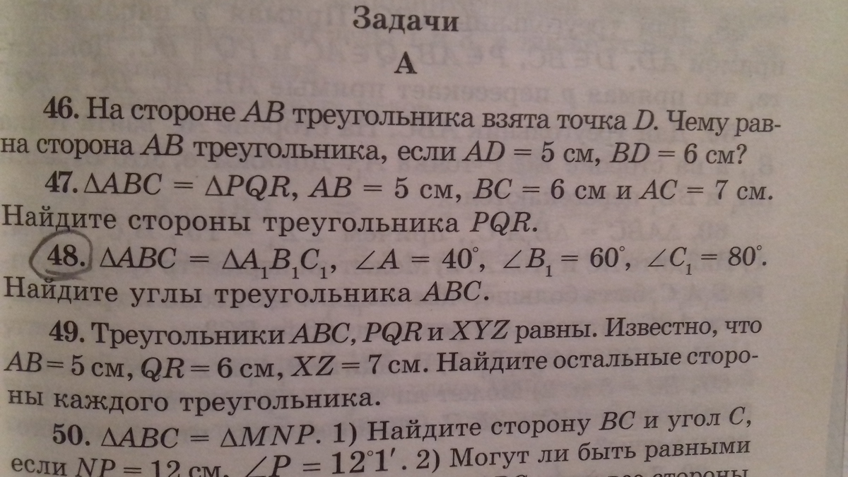 Так как треугольник ABC = треугольнику A'B'C'. Следовательно угол A= углу A'=40 градусов, угол B= углу B'=60 градусов, угол C= углу C'=80 градусов. Ответ: угол A=40, угол B=60, угол C=80