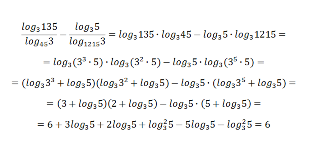 log3(135) * log3(45) - log3(5) * log3(1215) =