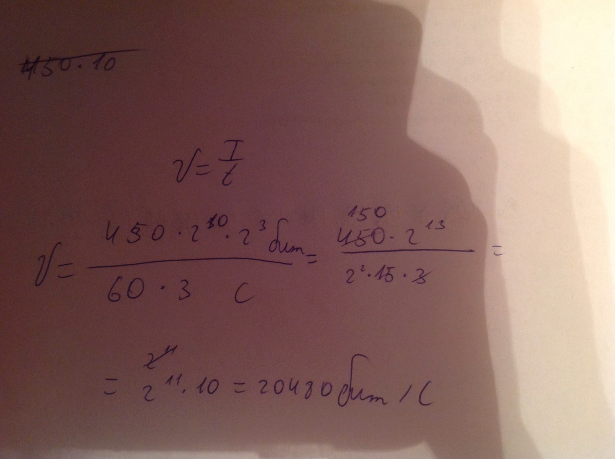 Передача файла размером 450 Кбайт через некоторое соединение заняла 3 минуты . Какова скорость передачи данных через это соединение в битах в секунду?В ответе укажите одно число - длительность передачи.