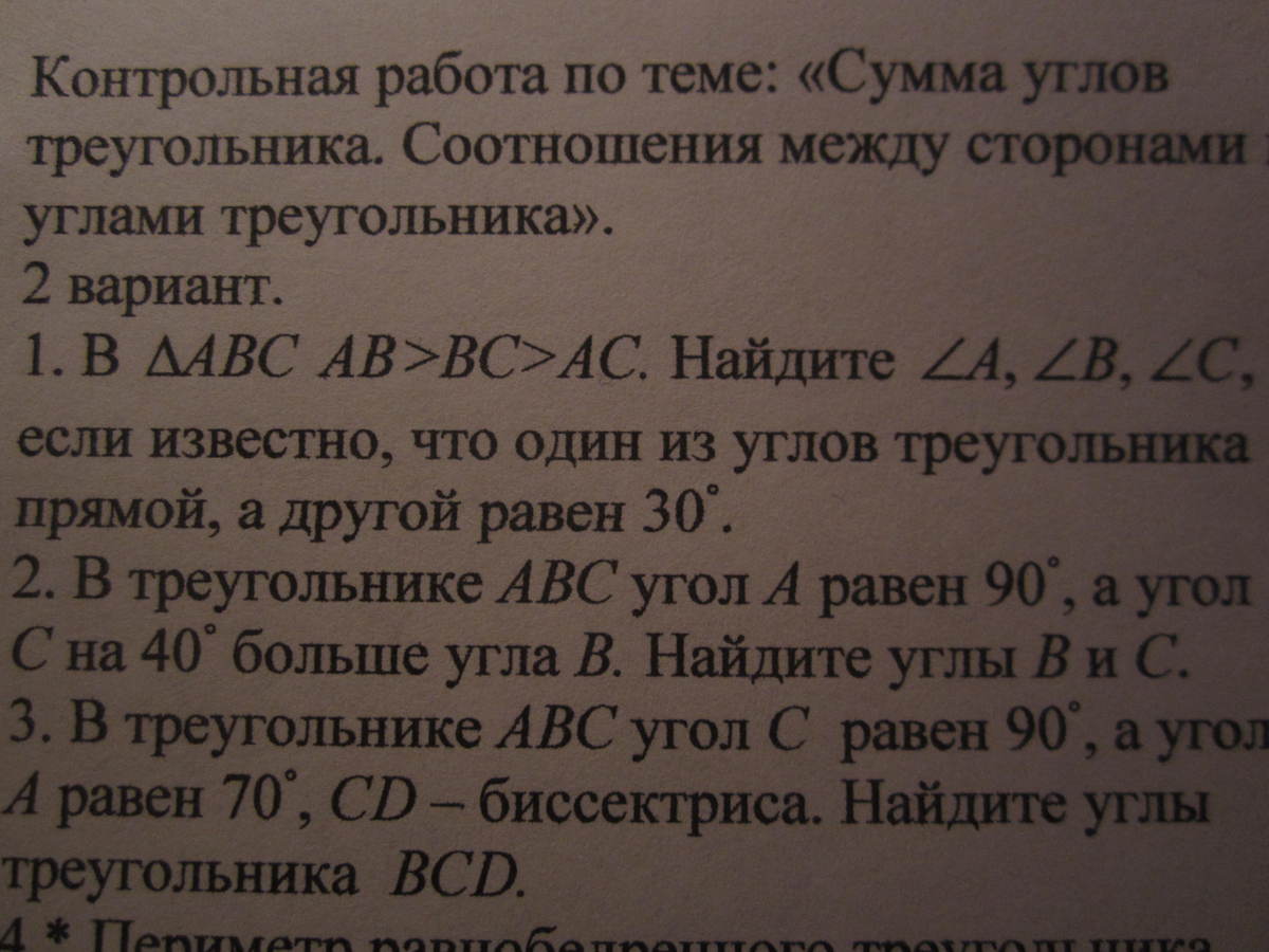 1) сумма углов треугольника составляет 180 градусов, т е 180-90-30=60