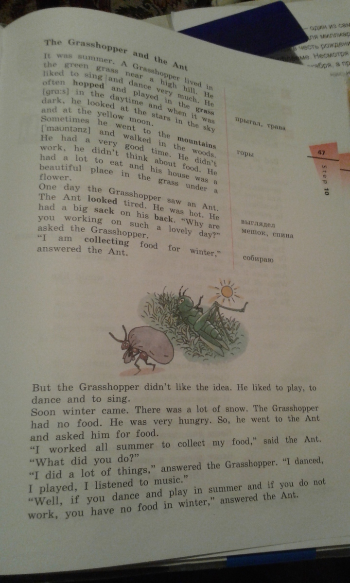 Однажды он увидел муравья. Он выглядел усталым. И разгоряченным. У него на спине был мешок. " почему ты работаешь в такой замечательный день?" Спросил он муравья.