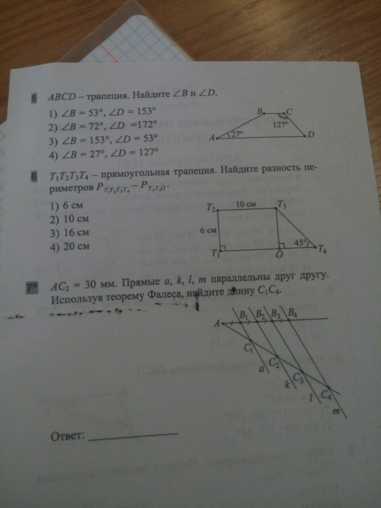 ABCD-трапеция. Найдите угол В и угол D, если угол С=127 градусов, угол А=127 градусов.Задача№5.СРОЧНО РЕШИТЕ :З