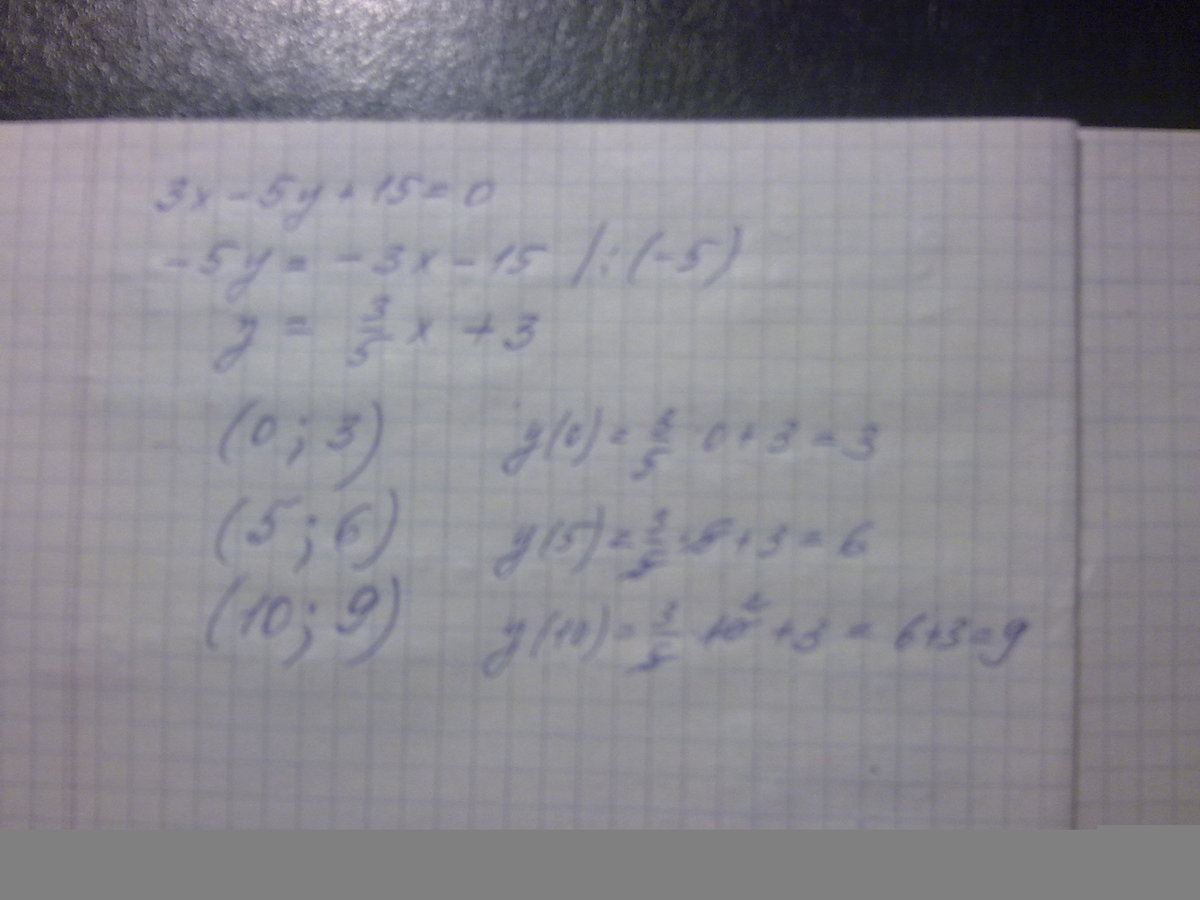 выразити из уравнения 3х-5у+15=0 переменную у через х. запишите три каких-нибудь решения этого уравнения! помогите пожалуйста!