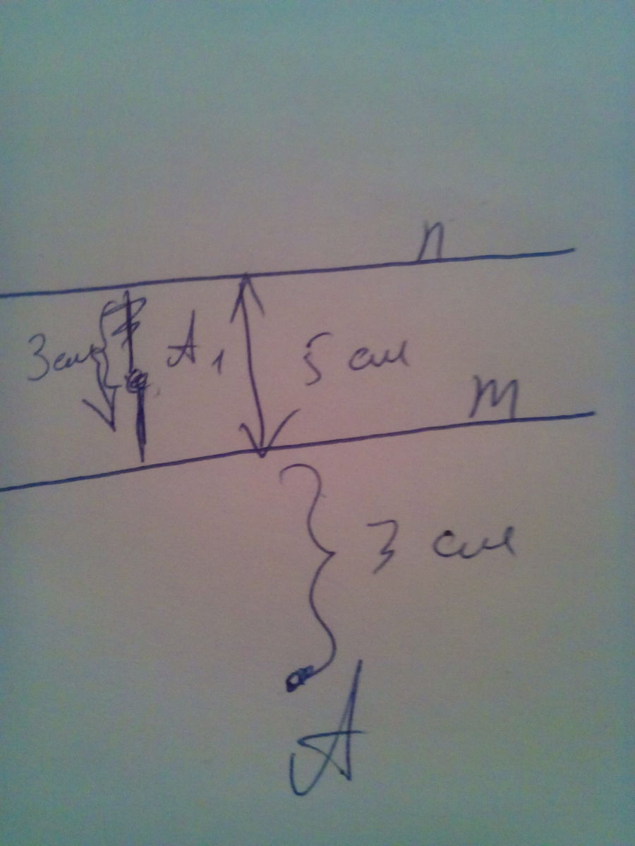 Расстояние между параллельными прямыми m и n равно 5 см. Точка А находиться на расстоянии 3 см от прямой m. Определите расстояние от точки А до прямой n. Сколько случаев надо рассмотреть?