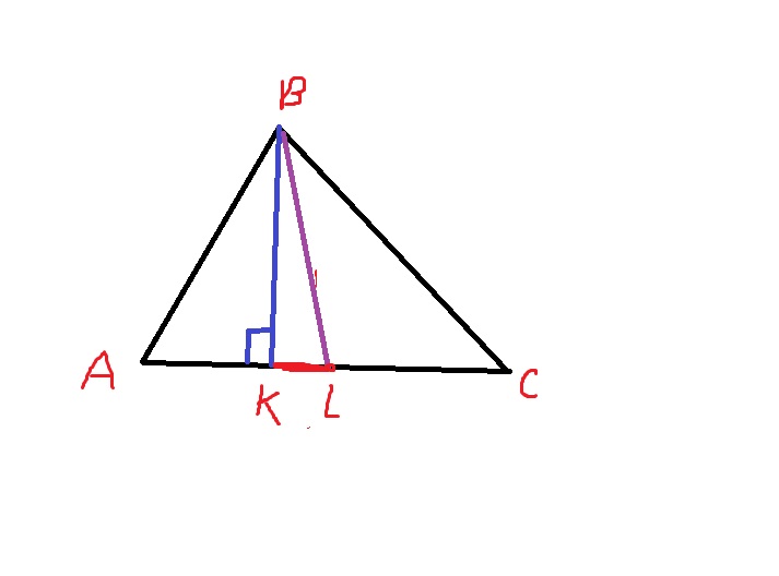 Тогда АВ - основание. ВК - высота. ВL - медиана.