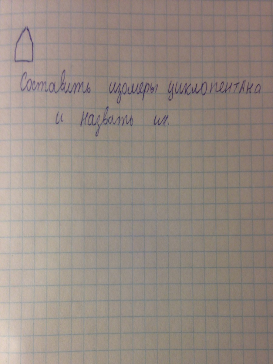 Составьте, пожалуйста, изомеры циклопентана и дайте им названия. (если нетрудно, то объясните)