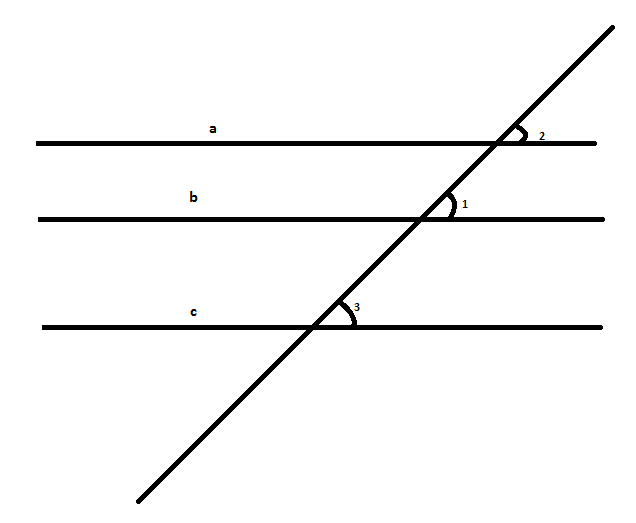 углы 1 и 2 и 3 --- соответственные, они равны.