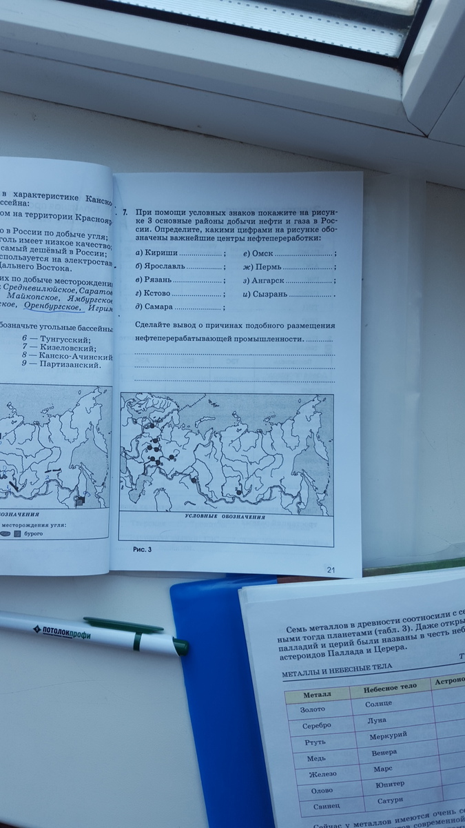 при помощи условных знаков покажите на рисунке 3 основные районы добычи нефти и газа в России Определите какими цифрами на рисунке обозначены важнейшие центры нефтепереработки: