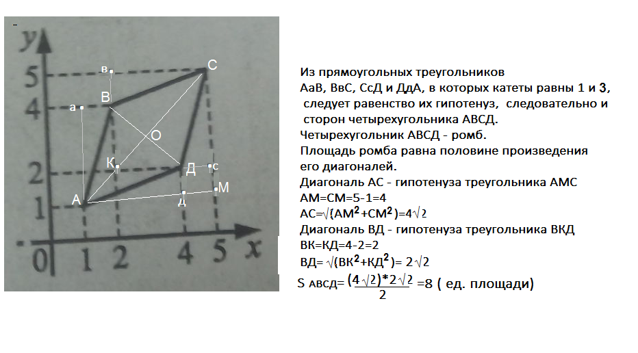 Обратите внимание на то, что стороны четырехугольника равны. Следовательно, он является ромбом.