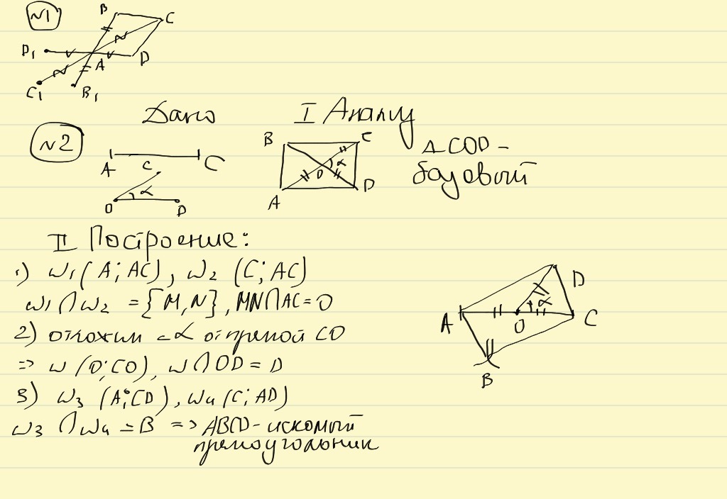 2. Постройте прямоугольник по диагонали и углу между диагоналями