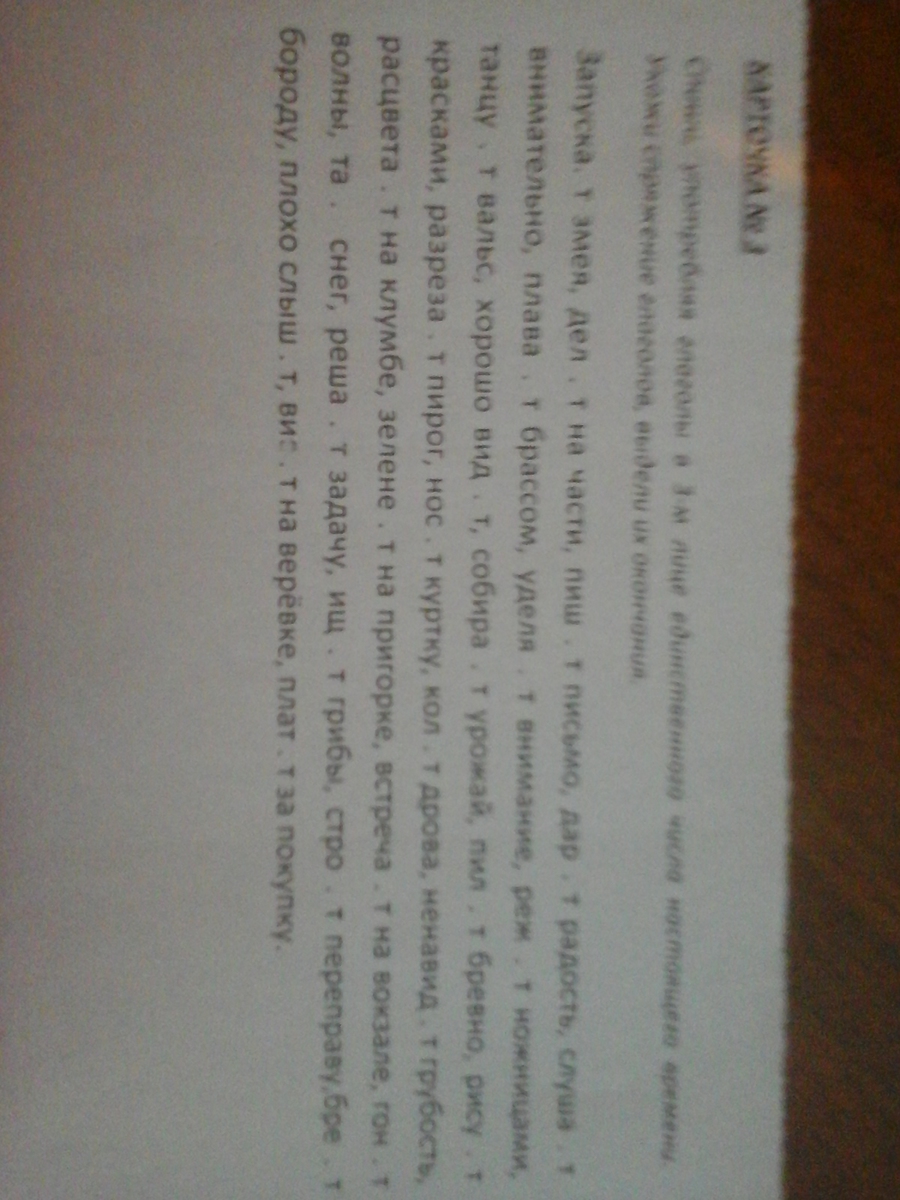 запуска/ет/ змея,делит// на части,пиш/ет/ письмо,дарит радость,слушает внимательно,плавает брассом,уделяет внимание,режет ножницами,танцует вальс,хорошо видит,собирает урожай,пилит бревно,рисует красками,разрезает пирог,носит куртку,колит дрова,ненавидит грубость,расцветает на клумбе,зеленеет на пригорке,встречает на вокзале,гонит волны,тает снег,ищет грибы,строят переправу,бреет бороду,плохо слышит,висит на верёвке,платит за покупку.