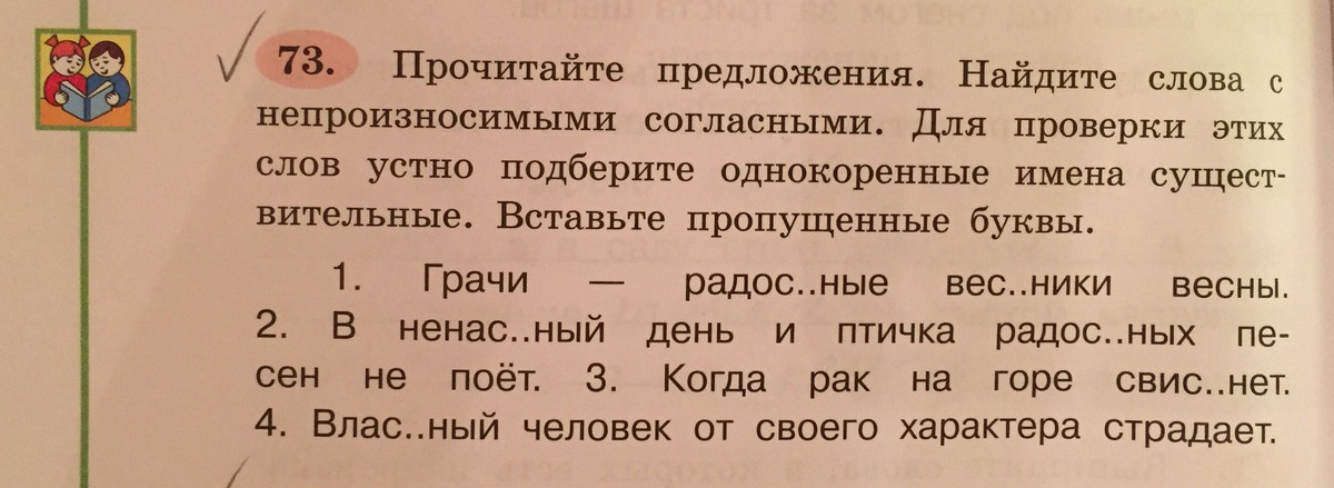 Прочитайте предложения. Найдите слова с непроизносимыми согласными. Для проверки этих слов устно подберите однокоренные имена существительные. Вставьте пропущенные буквы.