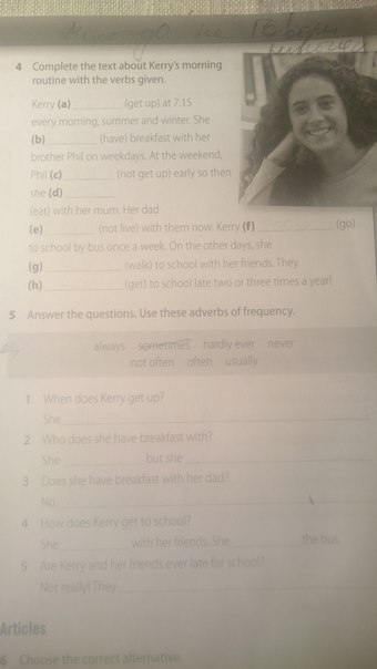 a) gets up b)has c) doesn`t get up d)eats e)doesn`t live f) goes g) walks h) get