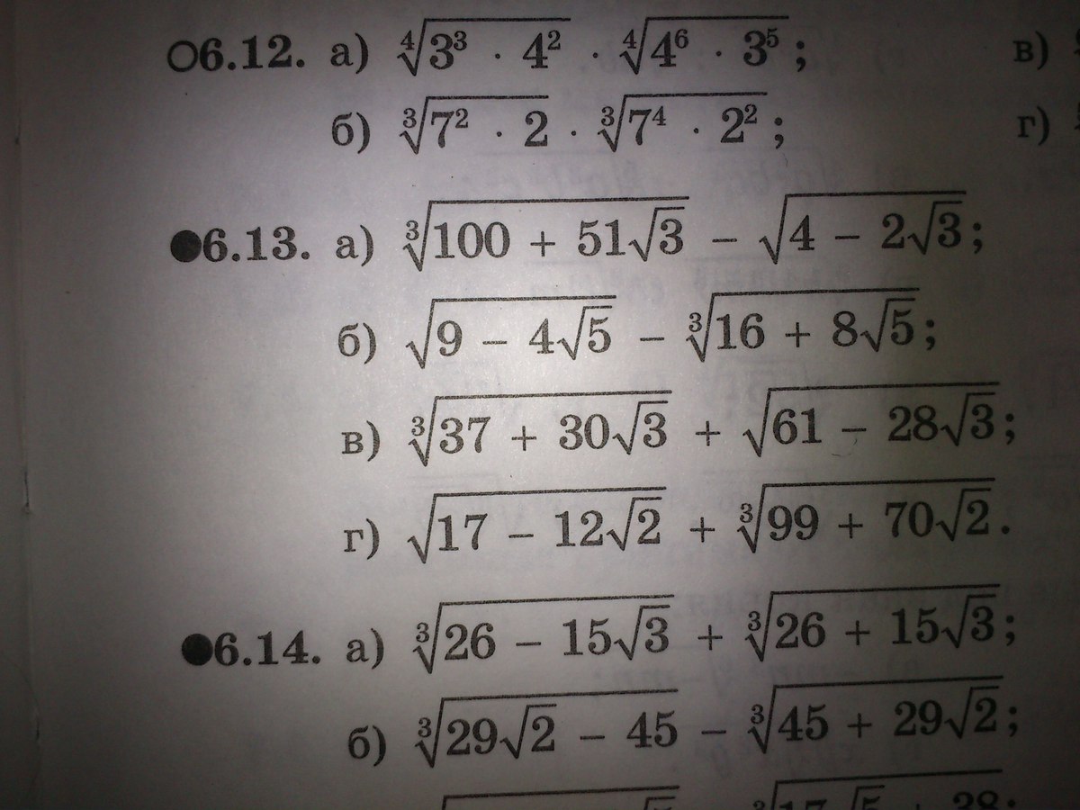 sqrt[3]{7^2cdot 2} cdot  sqrt[3]{7^4cdot 2^2}= sqrt[3]{7^2cdot 7^4cdot 2cdot 2^2}=sqrt[3]{7^6cdot 2^3}=7^2cdot 2=98\\\sqrt{9-4sqrt5}-sqrt[3]{16+8sqt5}=sqrt{(sqrt5-2)^2}-sqrt[3]{(1+sqrt5)^3}=\\=|sqrt5-2|-(1+sqrt5)=sqrt5-2-1-sqrt5=-3\\\sqrt[3]{29sqrt2-45}-sqrt[3]{45+29sqrt5}=sqrt[3]{(sqrt2-3)^3}-sqrt[3]{(sqrt2+3)^3}=\\=sqrt2-3-(sqrt2+3)=-6