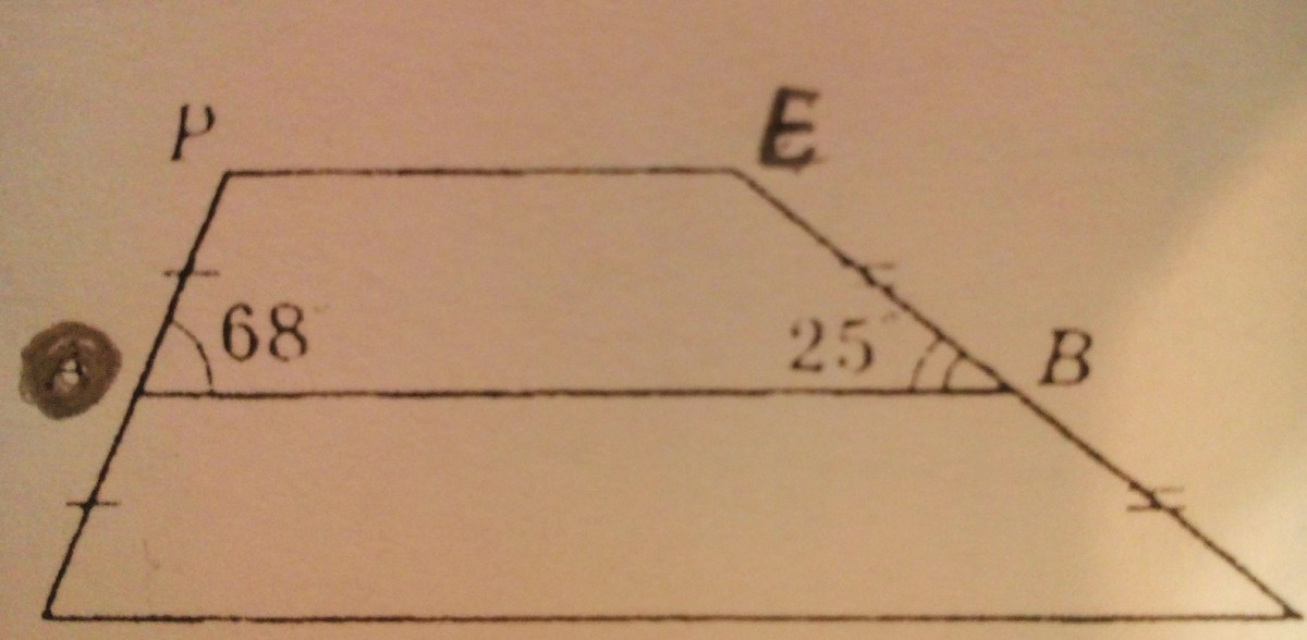 Сумма односторонних углов трапеции равна 180 градусов. Угол Р равен 180 - 68 = 112, угол Е равен 180 - 25 = 155.
