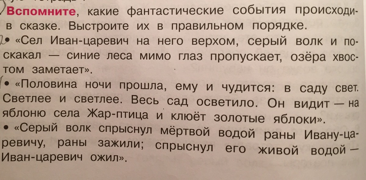 Вспомните , какие фантастические события происходили в сказке. Выстроите их в правильном порядке.