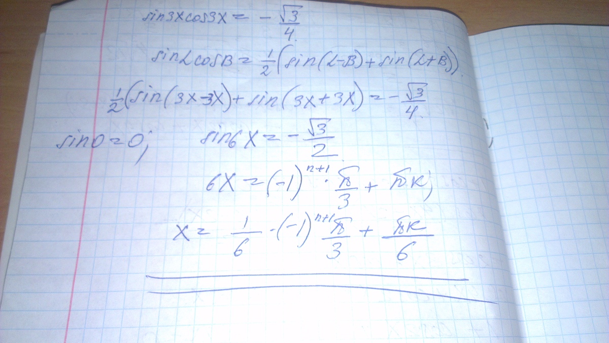 В этом уравнений такой же механизм решения, произведение синуса и косинуса расписываем, получаем сумму синусов, где синус 0 равен нулю.