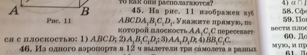 На рис.11 изображён куб ABCDA1B1C1D1. Укажите прямую, по которой плоскость AA1C1C пересекается с плоскостью: