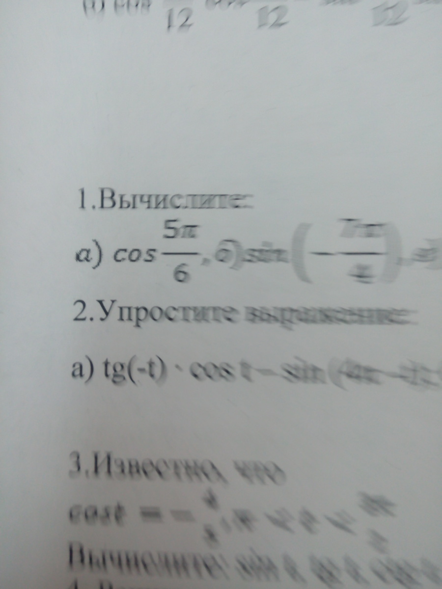 cos frac{5 pi }{6}=cos( frac{6 pi }{6} - frac{ pi }{6} )=cos( pi - frac{ pi }{6})=-cos frac{ pi }{6}= frac{ sqrt{3} }{2}\\sin(- frac{7 pi }{4})=-sin frac{7 pi }{4}=-sin( frac{8 pi }{4} - frac{ pi }{4} )=-sin( pi - frac{ pi }{4})=\\=-sin frac{ pi }{4}=- frac{ sqrt{2} }{2}