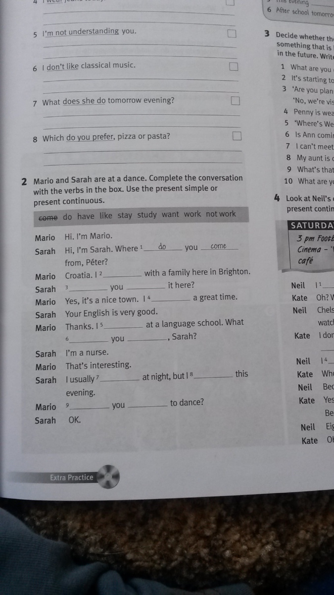 2. stay 3. Do you like 4. I`m having 5. study 6. Do, work 7. work 8. I am not working 9. Do you want