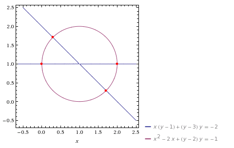 x = 1-1/sqrt(2), y = 1+1/sqrt(2);