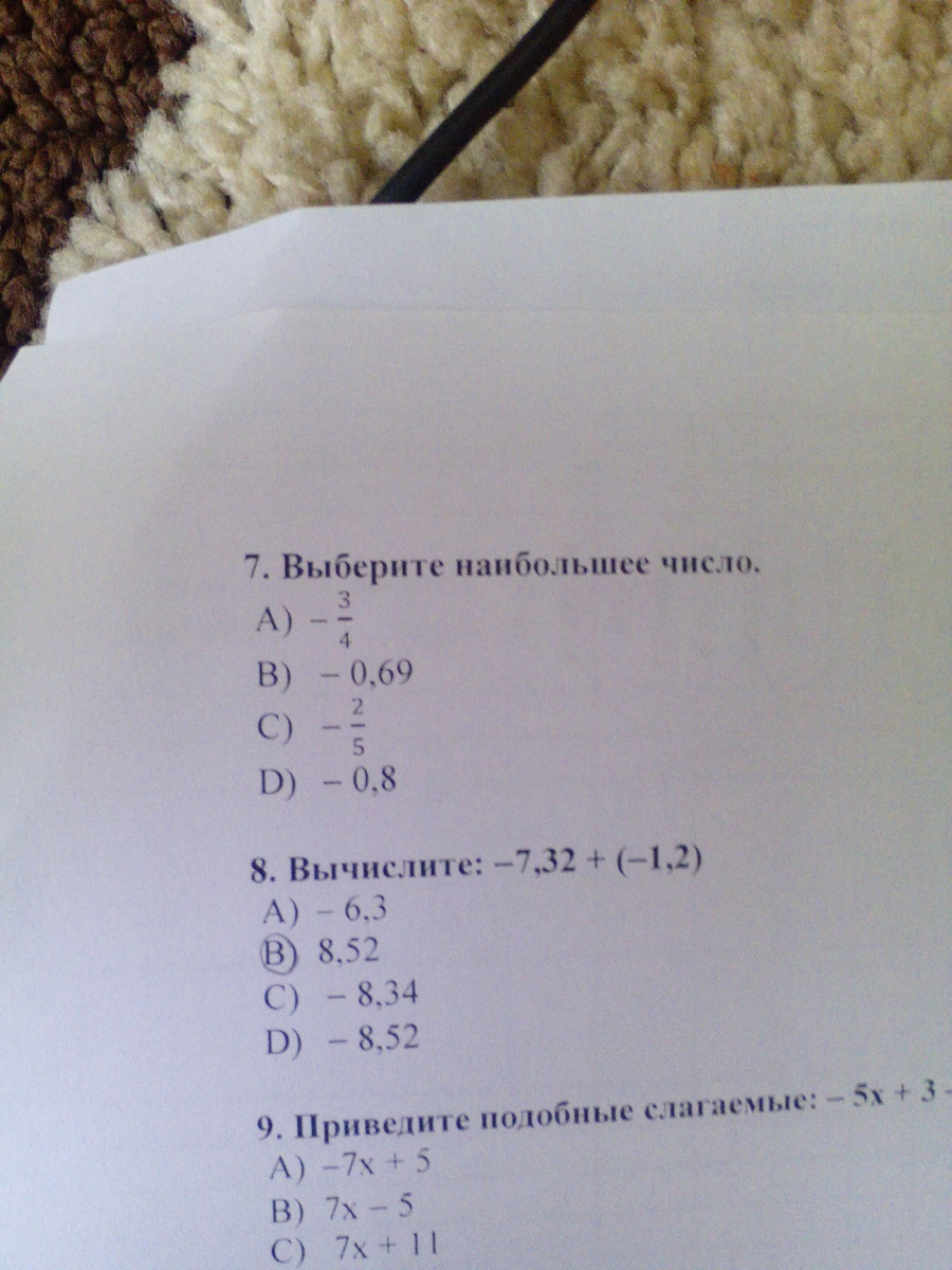 8) D) -7,32+(-1,2)= -8,32-0,2= -8,52