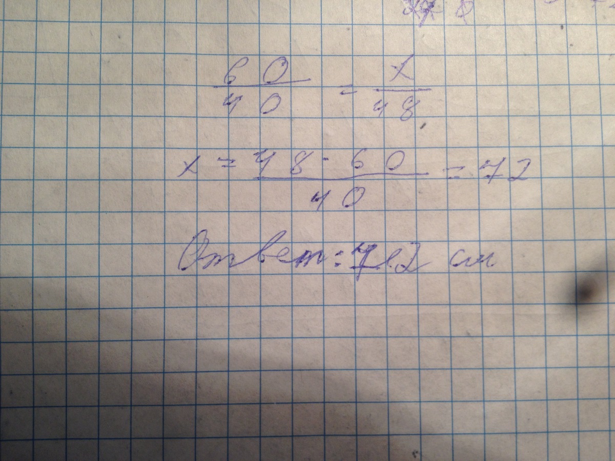 калесо радиусом 60 см делает на некотором растояние 40 оборотов каким должен бытьрадиус,калеса которое делает на том же расстояние 48 оборотов?