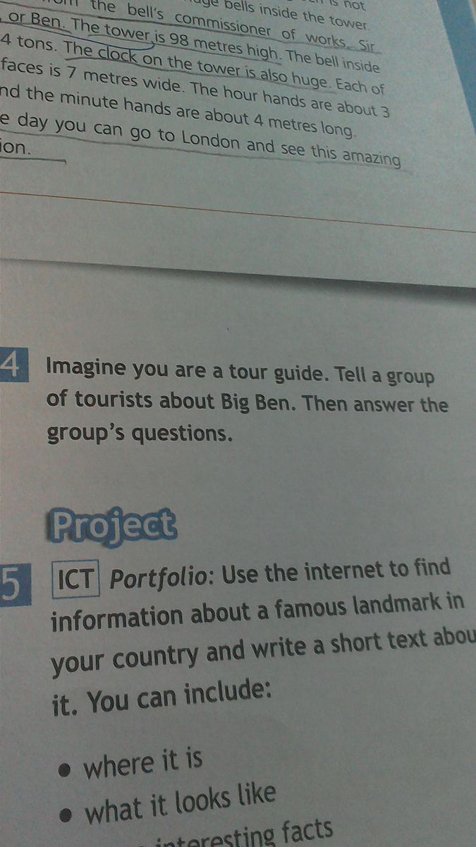 Представь, что ты путешественник. Расскажи группе туристов о Биг Бене. А потом ответь на их вопросы.