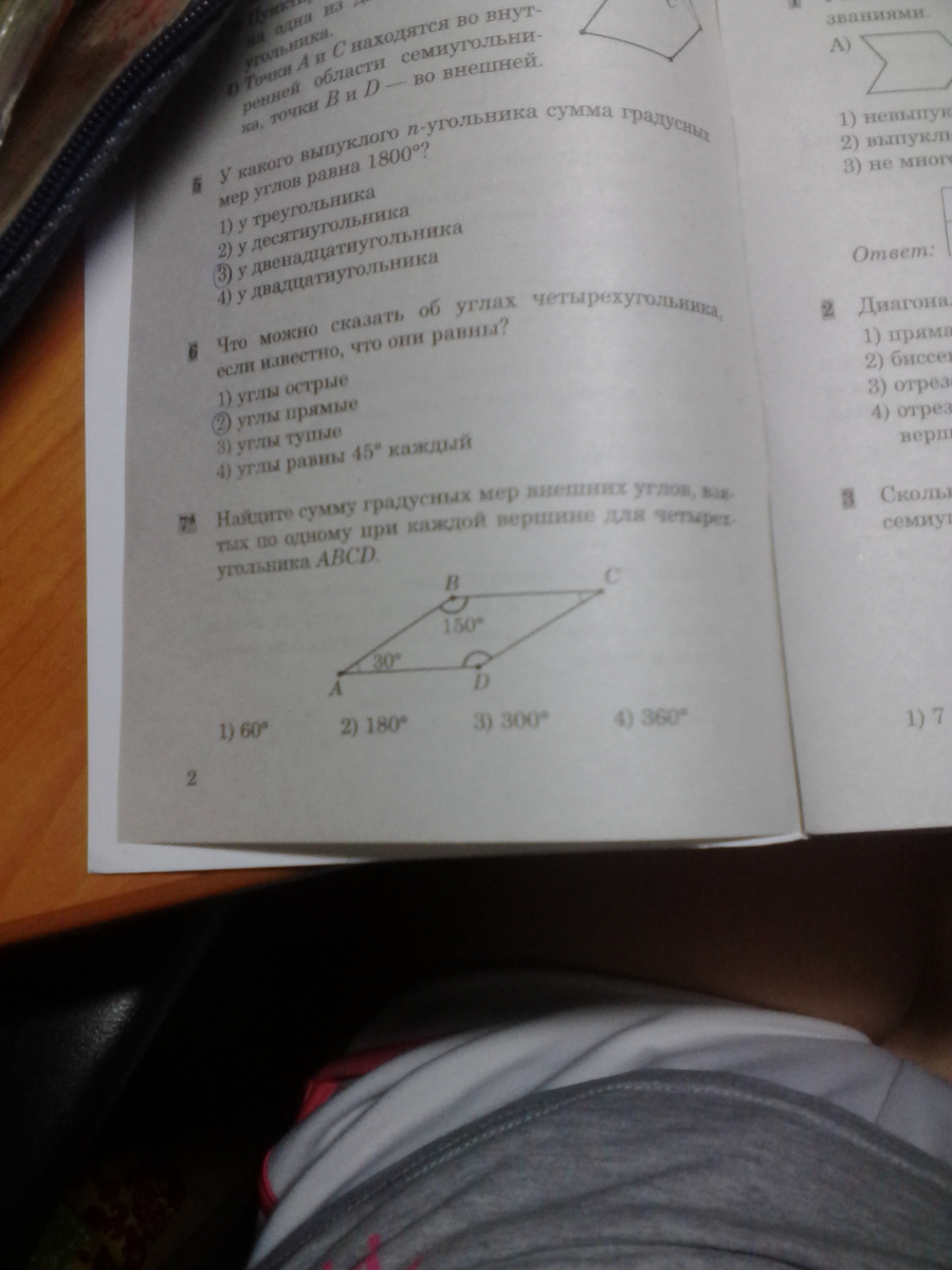 противоположные углы в сумме дают 180 градусов значит это параллелограмм, и отсюда сумма углов равна 180